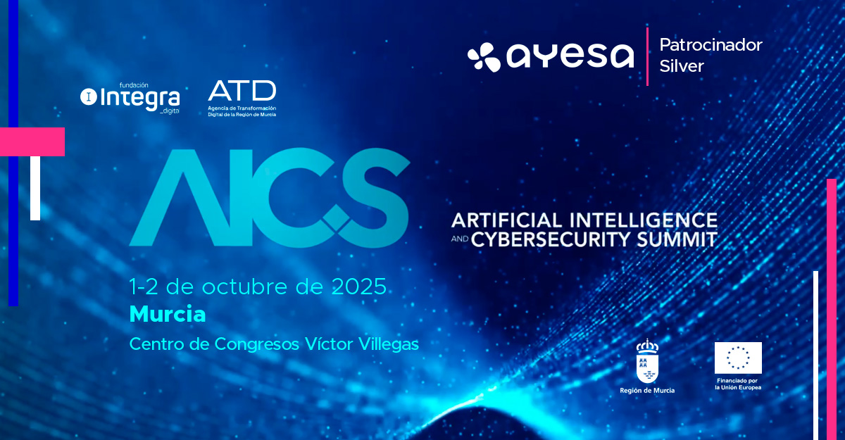 Ayesa se suma como Patrocinador Silver del «AICS. Summit de IA y Ciberseguridad», iniciativa estratégica enmarcada en el programa Capacita Tech, cuyo objetivo es visibilizar, activar y consolidar capacidades digitales avanzadas en los sectores estratégicos de especialización inteligente de la Región de Murcia, mediante el impulso de tecnologías clave como la inteligencia artificial y la ciberseguridad.