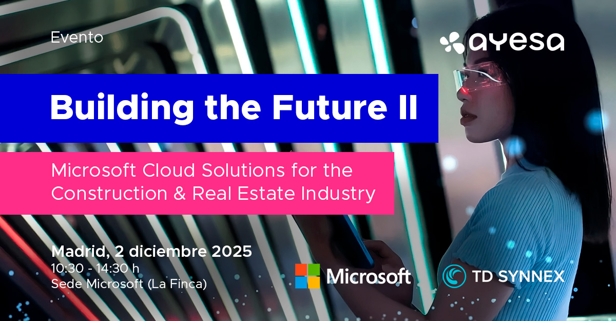 Con el apoyo de TD Synnex, Ayesa explicará cómo Azure permite una gestión segura, escalable y eficiente de la información, garantizando control y sostenibilidad en cada fase del proyecto.
