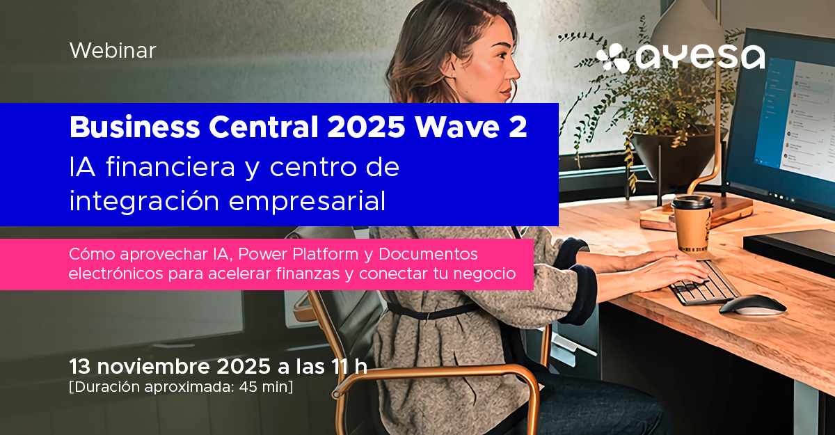 Si hoy tu ERP te obliga a reconciliar a mano, a perseguir PDFs y a pedir a TI cada integración, este webinar es para ti. Verás en directo cómo Business Central 2025 Wave 2 aplica IA para ganar horas en el cierre contable y cómo convertir a Business Central en el centro de integración con Power Platform y Documentos electrónicos end-to-end.