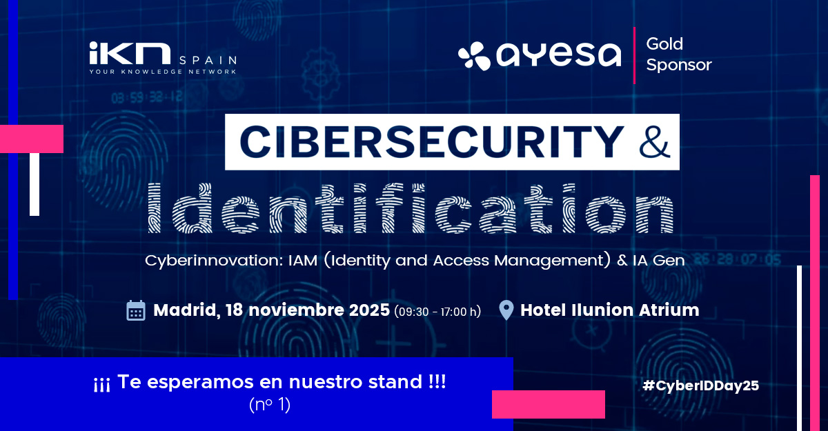 El próximo 18 de noviembre iKN Spain celebra la 5ª edición del ‘Cybersecurity & Identification’, una cita imprescindible sobre ciberseguridad e identidad digital. Tendrá lugar en el Hotel Ilunion Atrium de Madrid.