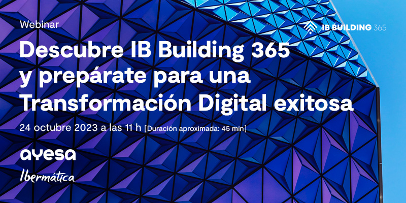 Aprovecha esta oportunidad para obtener una visión profunda de cómo IB Building 365 puede mejorar la eficiencia de tu empresa y llevarla al siguiente nivel en la era digital e inscríbete. A la recepción de tu inscripción te remitiremos las instrucciones de conexión al webinar.