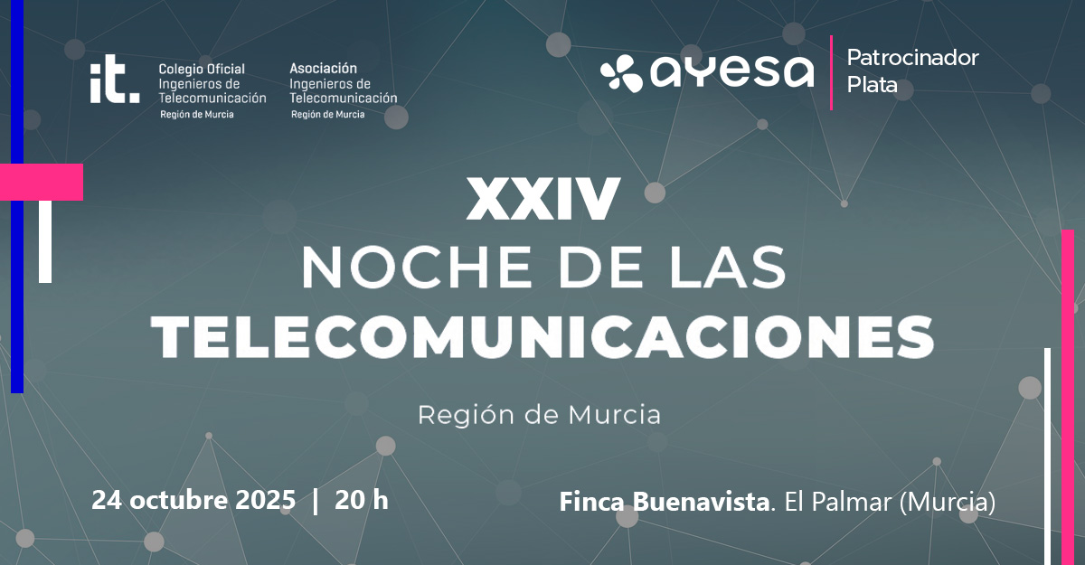 Ayesa es patrocinador plata de la ‘XXIV Noche de las Telecomunicaciones de la Región de Murcia’, evento organizado por la Asociación de Ingenieros de Telecomunicación de la Región de Murcia (AITeRM) que pretende ser un punto de encuentro de un amplio y representativo grupo de administraciones, entidades, empresas del Sector TIC y asociados de AITeRM.